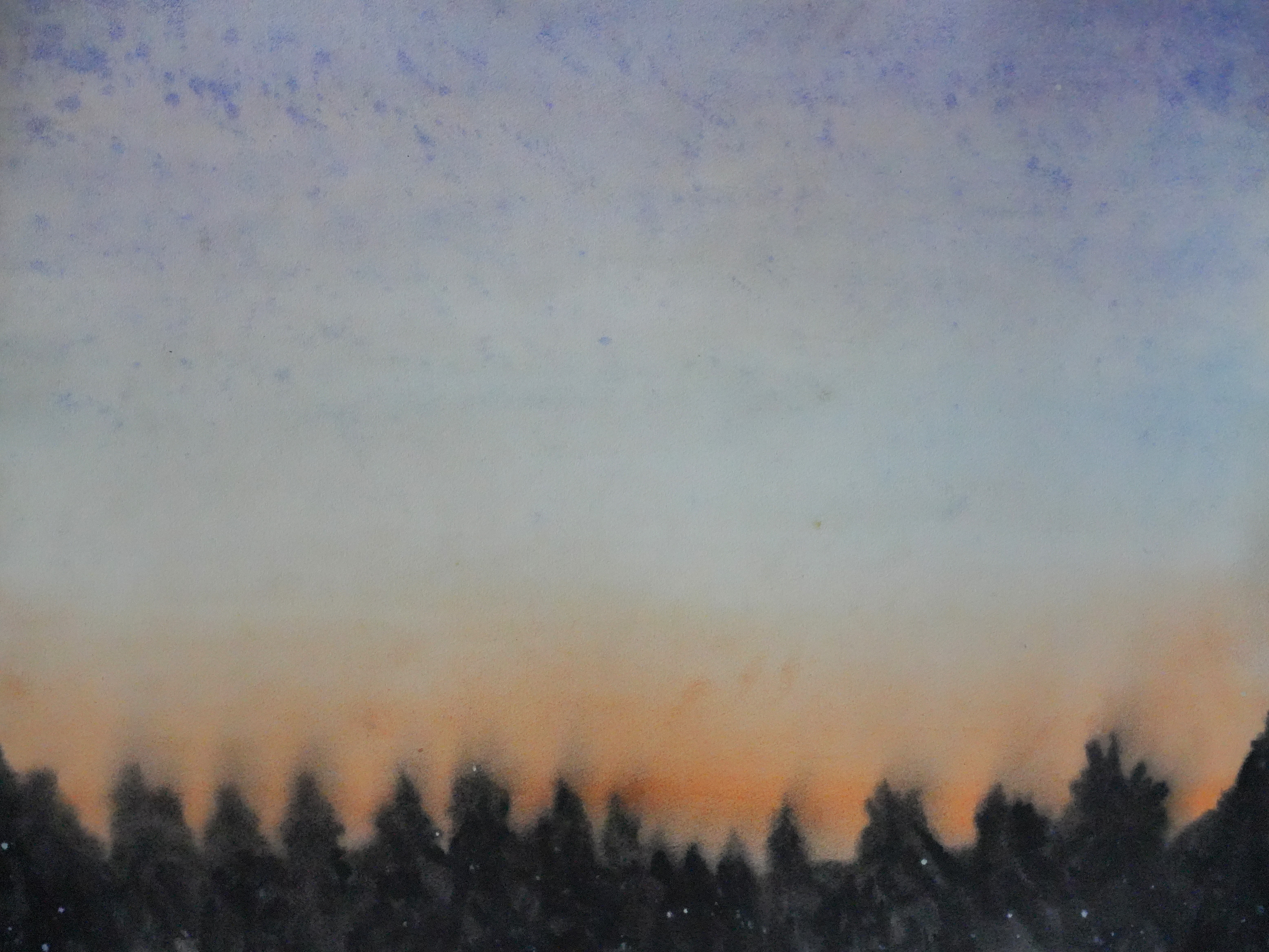 Galaxies in us . A series of watercolors. 3 paintings. Unique. // Galaxias en nosotros. Una serie de acuarelas. 3 pinturas. Únicas.Refuge at Twilight. Watercolor on cotton paper. 50 x 65 CM. Refugio en Crepúsculo. Acuarela sobre papel algodón. 50 x 65 CM. Available at Arsty.Our inner & transcendence mountains of heaven. Acrylic on canvas 80 x 100 CM.Energy wings of summer ethereal being. Acrylic on canvas. 100 x 100 CM.Show us the way to love & salvation in these times. Acrylic on canvas. 100 x 100 CM. Available at Artsy (www.artsy.com) via Azur Gallery Berlin.