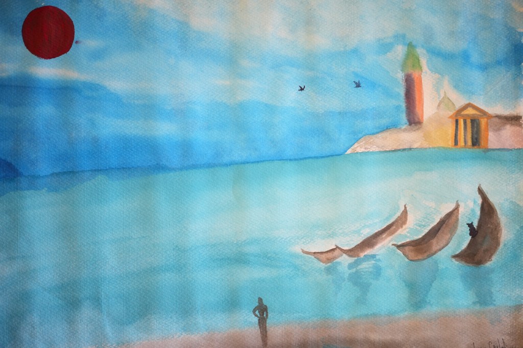 Venice in the heart. Memories of its horizon & waters sparkling under the sun. Available on Artsy (www.artsy.com) vía Azur Gallery Berlin.Poster of my Cinematographic short with A.I. for art contest «Arte Laguna prize» 2025, Venice.