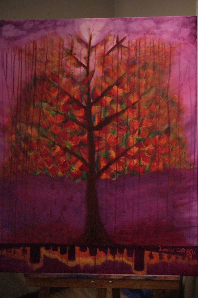 Composición Alfa & Omega. Acuarela sobre papel . 34 x 29 CM.Composición Alfa & Omega. Paisaje en acuarela en escala de grises con árbol bermellón. Alfa y Omega como un fondo difuso y una presencia fuerte de un árbol en tonos rojos. Que nos indica la nostalgia y profundidad por el paisaje que queremos ver siempre verde y que el corazón anhela. 34 x 29 CM. Openess & Gratitude. Acuarela sobre papel. 55 x 45 CM. Openess & Gratitude. Aguas celestiales y naturales. La actitud de apertura y gratitud hacia la vida y la naturaleza. La apertura hacia aguas celestiales que caen del cielo, gratitud hacia las aguas naturales que descienden desde las montañas y los ríos. Las formas abstractas y sutiles que nos muestran colores celestiales y suaves. una forma abierta que recibe los rayos celestes, la luz que da vida a la materia. 55 x 45 CM. Reconexión con la libertad de la existencia. Aguas Sublimes. Acuarela sobre papel 84 x 63 CM. Exhibida online en Canadá. «Aguas sublimes. Celestiales y naturales» ¿Cómo te sientes cuando entras al mar? ¿o a un lago, o cuando te mojas la cara en la mañana, o al beber un líquido fresco, refrescante y sabroso? ¿ o al mirar una galaxia con sus formas misteriosas?. Las aguas Sublimes que nos reconectan con la libertad. Sin éstas aguas no habría libertad. Sin estas agua no hay cultura, sin esta agua se acaba y se muere la civilización. Acuarela con formas abstractas y sutiles para representar todas esas aguas celestiales y naturales. (Obra que se exhibió online en @Partcrowd Gallery, Toronto, Canadá).Fuerzas internas & externas. Confrontar tu sombra, tu propio ser. Acuarela sobre papel. 76 x 60 CM Fuerzas internas y externas. Constructivas y Destructivas. Tú eliges que fuerza le das predominancia y valor. La fuerzas de la mente y la psique son muy poderosas. Si las sabes gobernar puedes hacer mucho y crear bienestar. Si no sabes entender ni gobernar tus estados mentales emocionales es causa de destrucción. Así ocurre afuera también. En la naturaleza, o aprendemos a conectar nuestro ser con ella o nos desconectamos por completo. Esta obra apela a tu propio ser, a tu inconsciente, a fuerzas que te interpelan. Longing for reconnection in the Hearts. En la sociedad actual lo contradictorio es que estamos mas conectados pero estamos mas solos, o nos sentimos mas sol@s. Así lo revelan las encuestas y estudios de múltiples organismos. Hay un anhelo por la reconexión de los corazones. Si vuelve la reconexión interior llegará la reconexion con la naturaleza. Acuarela sobre papel. valor: Nuestra vida está ahí afuera. Desvanecimiento del árbol sublime. Acrílico sobre tela. Obra única. Show us the way to love and salvation in these times. Símbolo de las fuerzas que están en nosotros que nos pueden llevar a una salida para el futuro. Acrílico sobre tela. Obra única. 1 Mt X 1Mt.